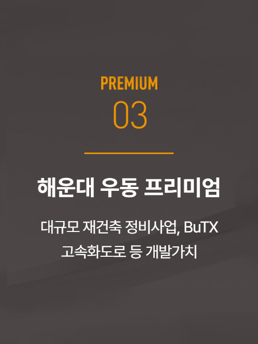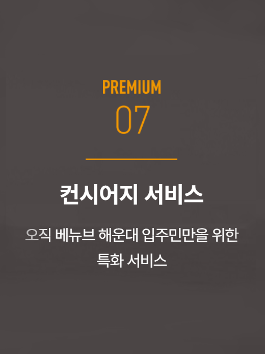 PREMIUM 01 리치벨트 중심입지 센텀시티-마린시티-엘시티를 잇는 리치 라이프의 중심 더보기 PREMIUM 02 단지연결 더블 역세권 2호선 벡스코역 단지연결 동해선 벡스코역 더블초역세권 더보기 PREMIUM 03 해운대 우동 프리미엄 대규모 재건축 정비사업, BuTX 고속화도로 등 개발가치 더보기 PREMIUM 04 명문교육 인프라 강동초, 해강중, 해운대중·여중 센텀학원가 등 명문 교육 더보기 PREMIUM 05 48층 파노라마 조망 해운대부터 광안리까지 연결하는 파노라마 조망 더보기 PREMIUM 06 고품격 프리미엄 마감 커튼월룩 외관특화, 고급수입가전가구, 마감재 더보기 PREMIUM 07 컨시어지 서비스 오직 베뉴브 해운대 입주민만을 위한 특화 서비스 더보기 PREMIUM 01 리치벨트 중심입지 센텀시티-마린시티-엘시티를 잇는 리치 라이프의 중심 PREMIUM 02 단지연결 더블 역세권 2호선 벡스코역 단지연결 동해선 벡스코역 더블초역세권 PREMIUM 03 해운대 우동 프리미엄 대규모 재건축 정비사업, BuTX 고속화도로 등 개발가치 PREMIUM 04 명문교육 인프라 강동초, 해강중, 해운대중·여중 센텀학원가 등 명문 교육 PREMIUM 05 48층 파노라마 조망 해운대부터 광안리까지 연결하는 파노라마 조망 PREMIUM 06 고품격 프리미엄 마감 커튼월룩 외관특화, 고급수입가전가구, 마감재 PREMIUM 07 컨시어지 서비스 오직 베뉴브 해운대 입주민만을 위한 특화 서비스
